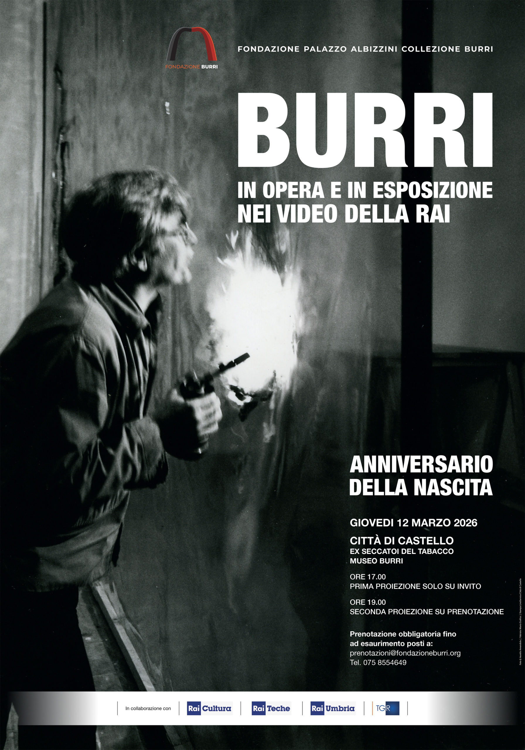 L’iniziativa, realizzata in collaborazione con RAI Umbria, RAI Teche e RAI Cultura, propone una rassegna di proiezioni video inedite provenienti dagli archivi RAI, con un montaggio “a collage” che documenta Burri in azione e ripercorre le sue esposizioni storiche in prestigiose sedi museali.